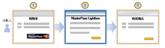 下图显示了您的购物网站和 Masterpass 的示例结账流。